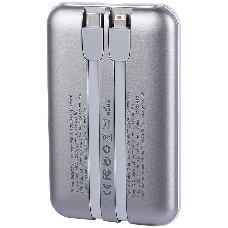 شارژر همراه فست شارژ یسیدو مدل YP48 با ظرفیت 10000 میلی آمپر ساعت