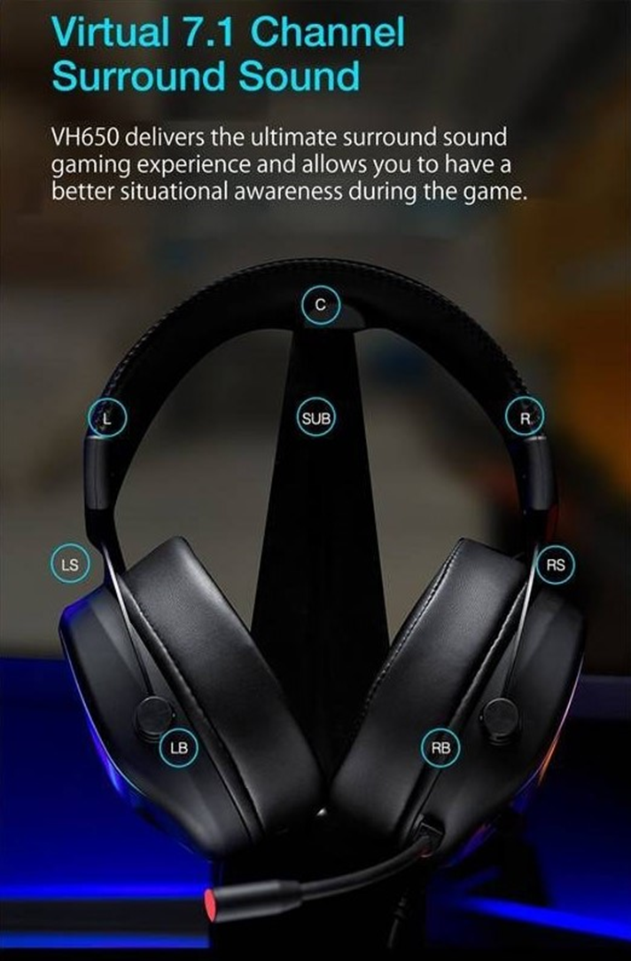 یکی از نقاط قوت این هدست گیمینگ در مقایسه با کالاهای همرده خود، قابلیت پشتیبانی از صدای 7.1 کاناله است که وضوح بیشتر و کیفیت صدای بهتری به کاربر ارائه میدهد.