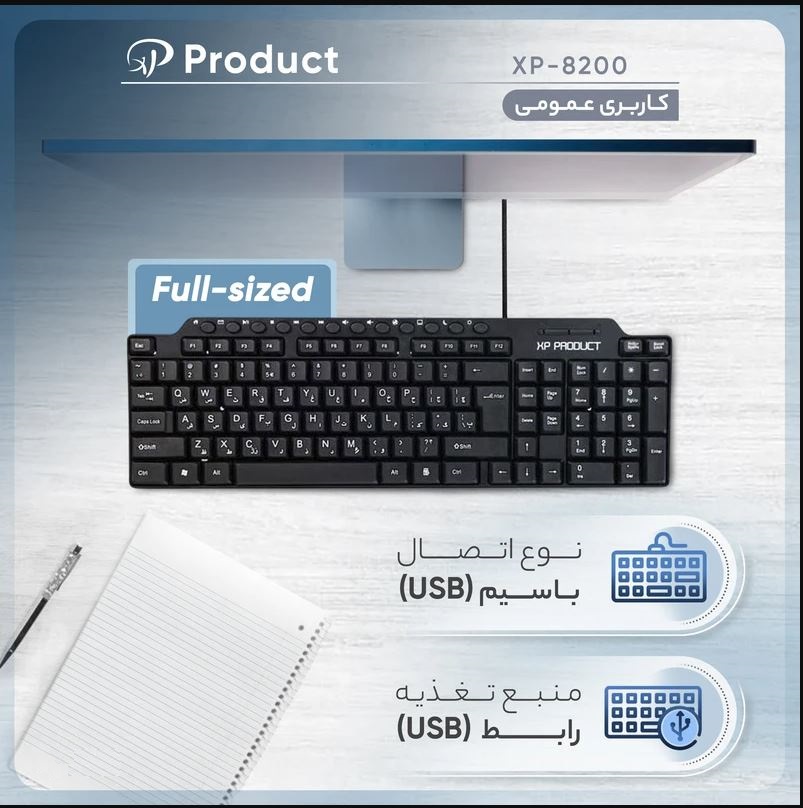 کیبورد مدل XP-8200 یک محصول بسیار زیبا از شرکت ایکس پی است که از طریق درگاه USB به رایانه شما متصل می شود.